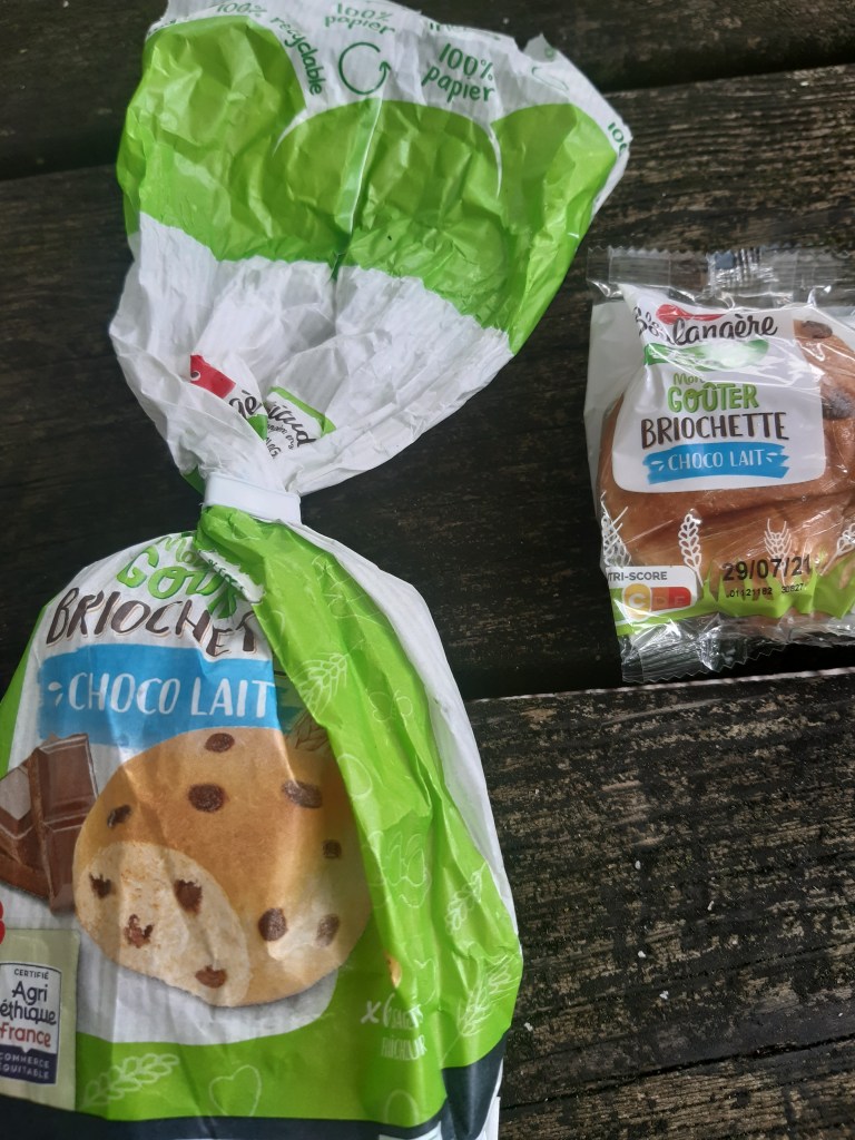Petit coup de gueule du jour ! Je me suis acheté des petites brioches au chocolat, bien pratique pour le petit déjeuner, même si c’est industriel, c’est bio. Je fais attention aux produits que j’achète et leurs emballages. Sur le paquet il est noté 100% papier, 100% recyclable. Super, un produit bio, abordable et dont l’emballage ne pollu pas.