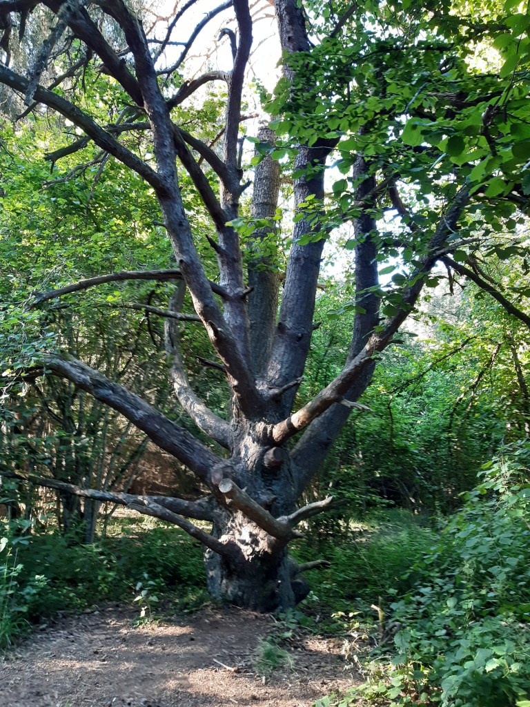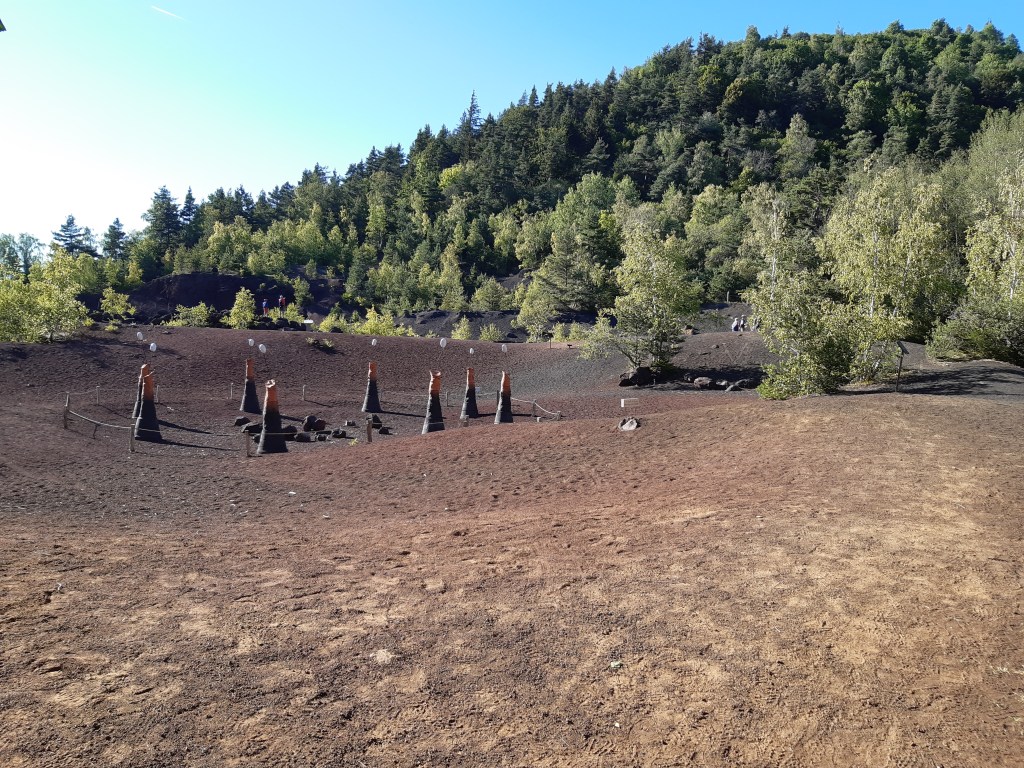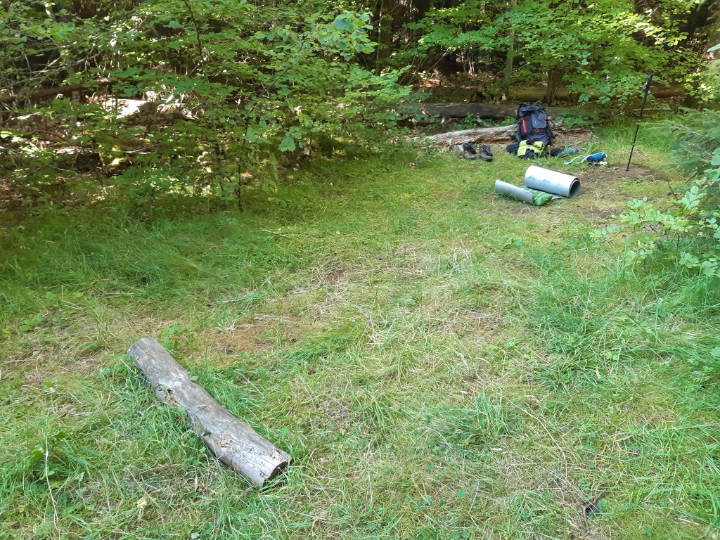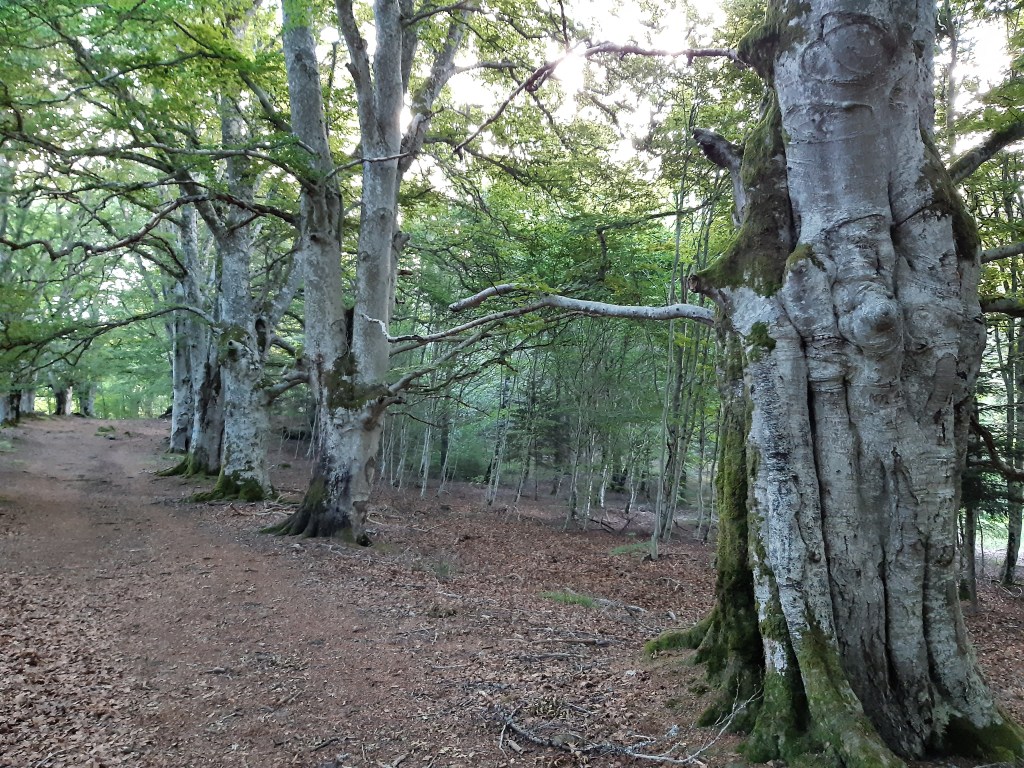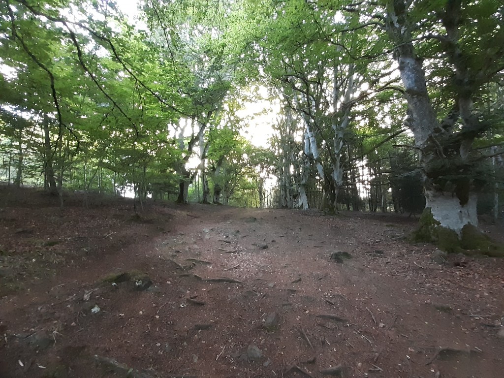 Le lendemain je reprends le chemin de bonne heure, à la fraiche. Je sais que jusqu’au sommet du Puy-de-Dôme, je n’aurai pas de répit, ça monte un peu, ça monte beaucoup, mais ça monte tout le temps. Je passe devant la hêtraie évoquée la veille par le maire. En effet l’endroit est joli et semble régulièrement utilisé par un camp de scouts. D’autres bivouaqueurs sont également installés par ici, ils dorment encore.