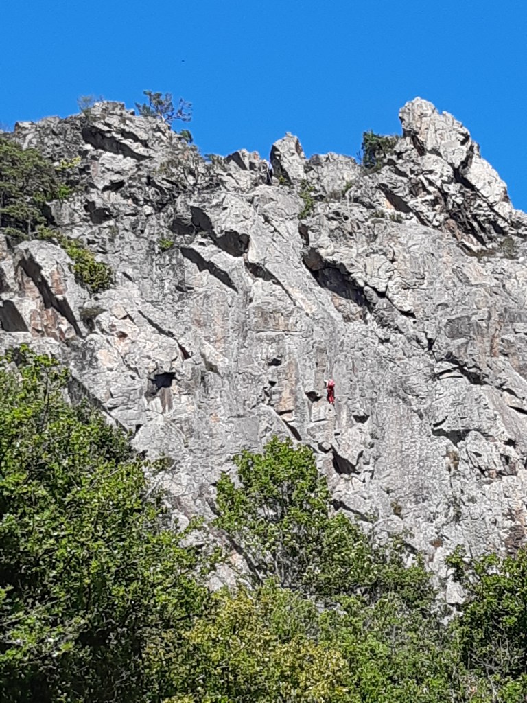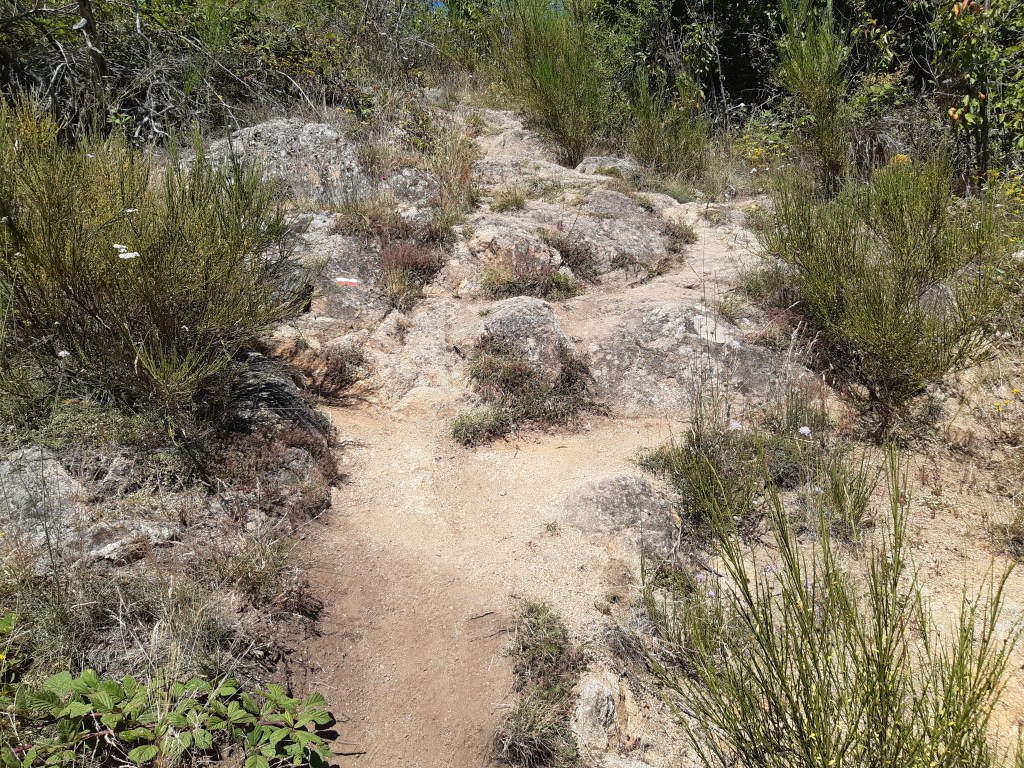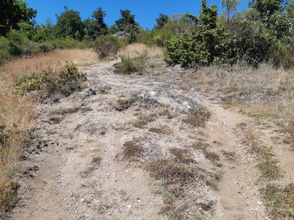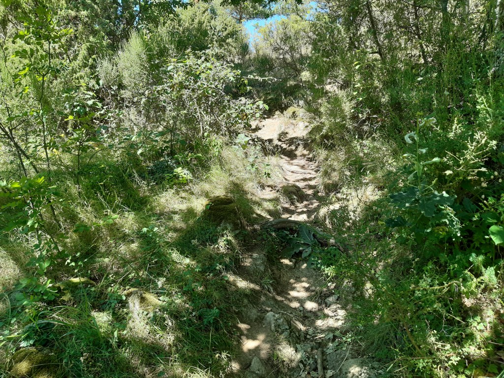 Je reprends ma route qui commence par une belle côte en plein soleil. La suite du chemin sera moins abritée, du coup moins agréable à case de la chaleur. Mais les paysages toujours aussi beaux et variés. À Phialeix, une jeune couple semble cherche son chemin. Je les rassure sur la direction à suivre, il est vrai que certains passages ne sont pas super bien balisés. Le bon sens et l’habitude aident beaucoup, mais parfois le doute subsiste. Heureusement, le GPS permet de valider (ou pas) l’intuition du randonneur averti (enfin presque). Rapidement, ils me doublent et prennent de l’avance.