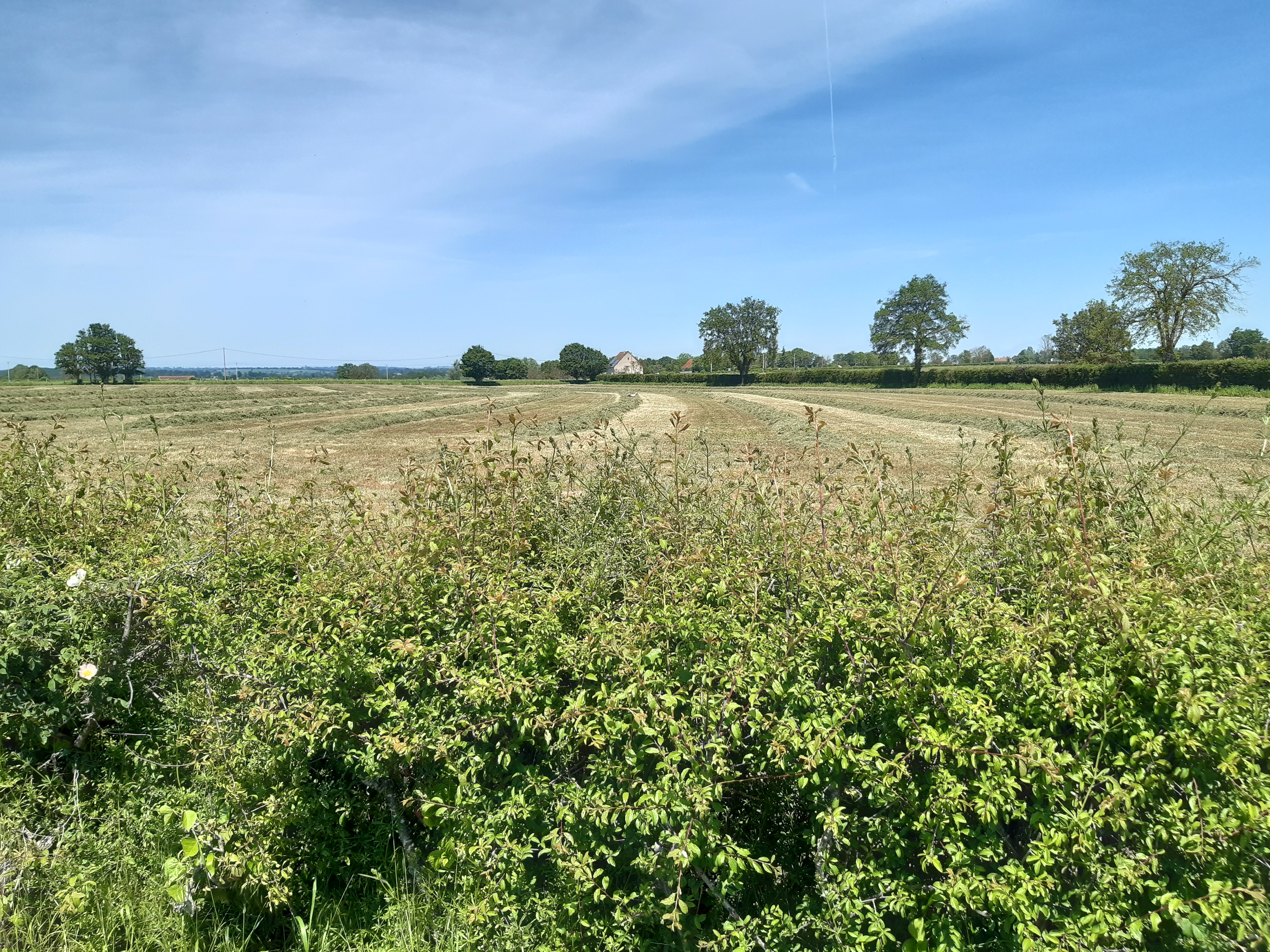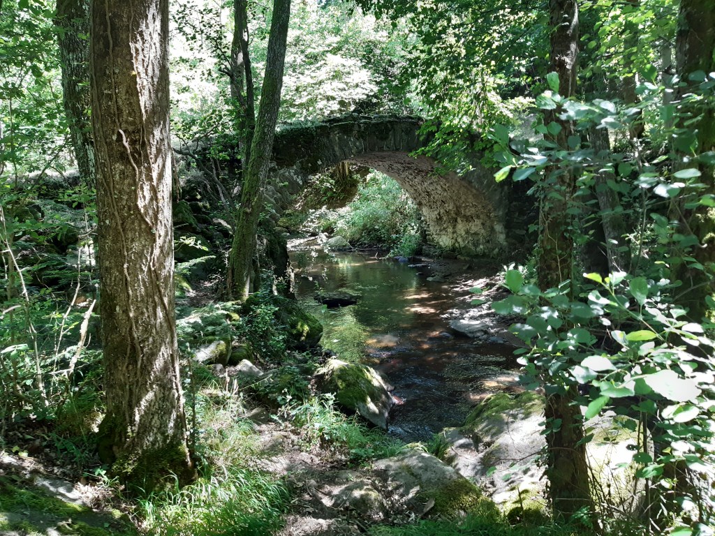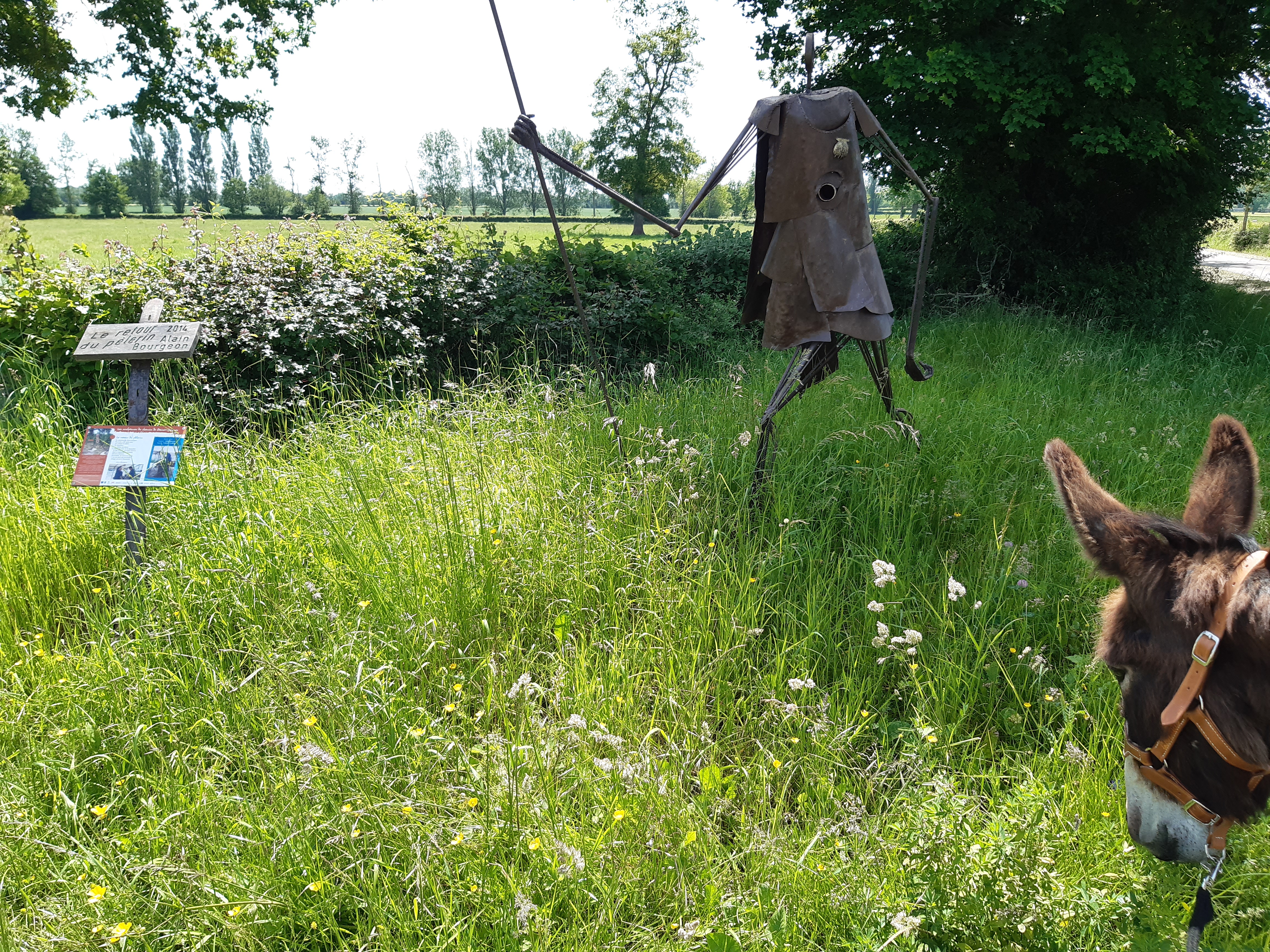 Je m’arrête de bonheur ce midi pour faire ma pause casse-croûte et je suis rattrapé par un groupe de pèlerins. Ils font partie de ce que j’appelle des pèlerins professionnels, ce sont des gens qui marchent avec des objectifs précis, comme quand ils travaillaient : on part à une heure précise du gîte, on marche tant de kilomètres on fait la pause à tel endroit pour déjeuner puis on remarche encore tant de kilomètres car il faut avoir fini à telle heure pour arriver au gîte… Bref, tout est programmé, pas de temps pour la découverte ou les rencontres, les surprises du chemin… Je plains sincèrement ces marcheurs qui ne profitent pas du paysage et de la marche pour méditer et se ressourcer. « N’oublie pas de lâcher prise ! Que va-t-il rester de ton pèlerinage ? » Bon après tout il font bien ce qu’ils veulent, moi je marche à mon rythme, ou plutôt à celui d’Honoré qui me fait remarquer que je suis fatigué. Il a raison, on va écourter l’étape, on s’arrête juste après être passé sous l’autoroute A20. C’est étrange cette sensation, on était passé au-dessus l’an dernier au mois de juillet quand on a traversé Limoges.