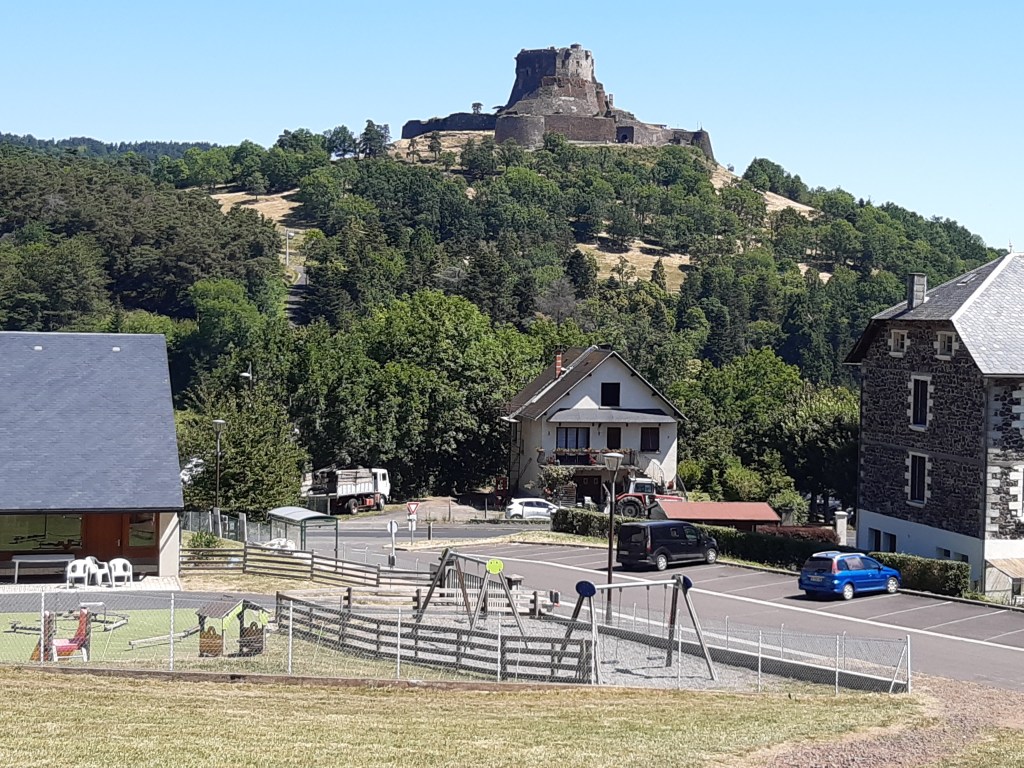 Je traverse la route D996 qui relie Saint-Nectaire et Murol. Encore une belle côte, la dernière de ce périple. Le château de Murol est en vue. Ce n’est pourtant pas la première fois que je le vois, mais à chaque fois, je suis émerveillé. Je redescends vers Chautignat, en profite pour regarder les heures d’ouverture de la ferme pour revenir prendre mon fromage. Je passe devant le château, arpente les rues du village médiéval de Murol. Je suis presque arrivé. Je fais durer le plaisir en déjeunant au pied du Tartaret.