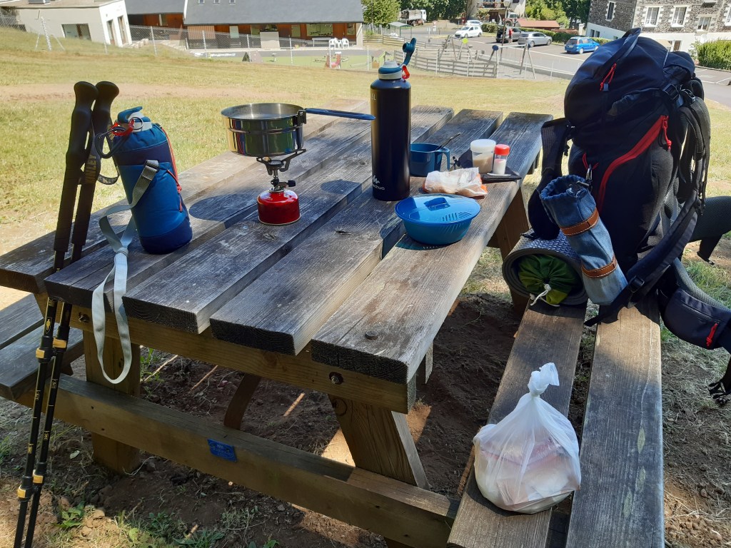 Je continue mon chemin et tombe sur une charmante famille qui me propose de l’eau mais qui n’a pas de place pour m’accueillir. En face habite le maire qui n’est pas là, je demande au voisin de derrière qui m’accueille en pantoufles, mais qui me dit qu’il n’habite pas ici… On est bien loin de l’accueil chaleureux des gens de Tarn. J’arrive à la mairie qui est exceptionnellement fermée pour cause de réunion. Heureusement tout près il y a une aire de jeux ou des enfants m’indiquent la salle des fêtes où je serai tranquille. C’est la première fois que je dîne seul dans ma tente depuis que j’étais arrivé dans le Tarn.