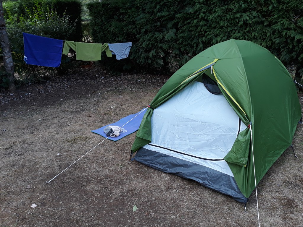 Je suis à la fois content et déçu que ce soit déjà la fin. Mais je ne suis pas encore arrivé. Donc je descends aussi vite que possible, Saint-Nectaire est une ville toute en longueur, mais la pente est douce et je sais où je vais. J’arrive au camping pile à l’heure, essoufflé, j’ai du mal à parler. Le gérant m’accueil rapidement, me fait payer en liquide estimant qu’il me faisait déjà un « prix randonneur » et qu’il n’allait pas en plus, l’enregistrer dans sa comptabilité. Bref c’est un peu cher mais au moins je suis en sécurité, j’ai une douche à disposition, de l’eau est chaude et de l’eau potable, je peux laver mon linge et ma vaisselle. Le grand luxe pour un randonneur qui descend de la montagne. Retour brutal à la civilisation, au bord de la piscine du camping. Mais il n’y a plus que des retraités en camping-car, pas de cris d’enfants, je vais quand même pouvoir me reposer, j’ai parcouru plus de 35 km aujourd’hui.