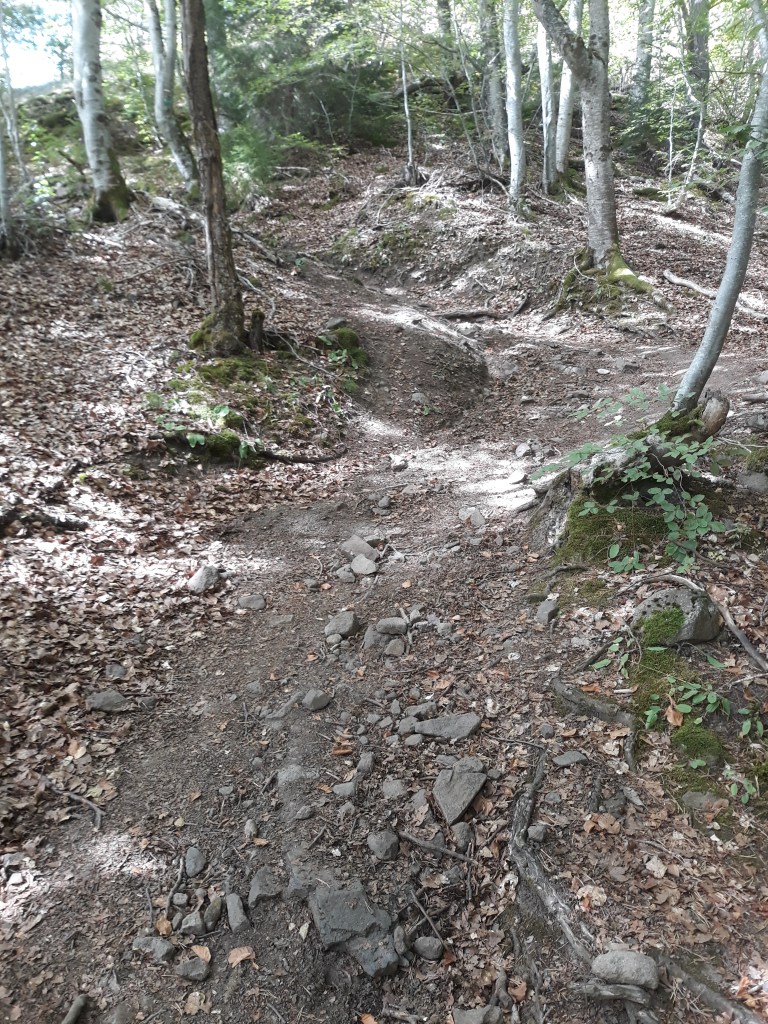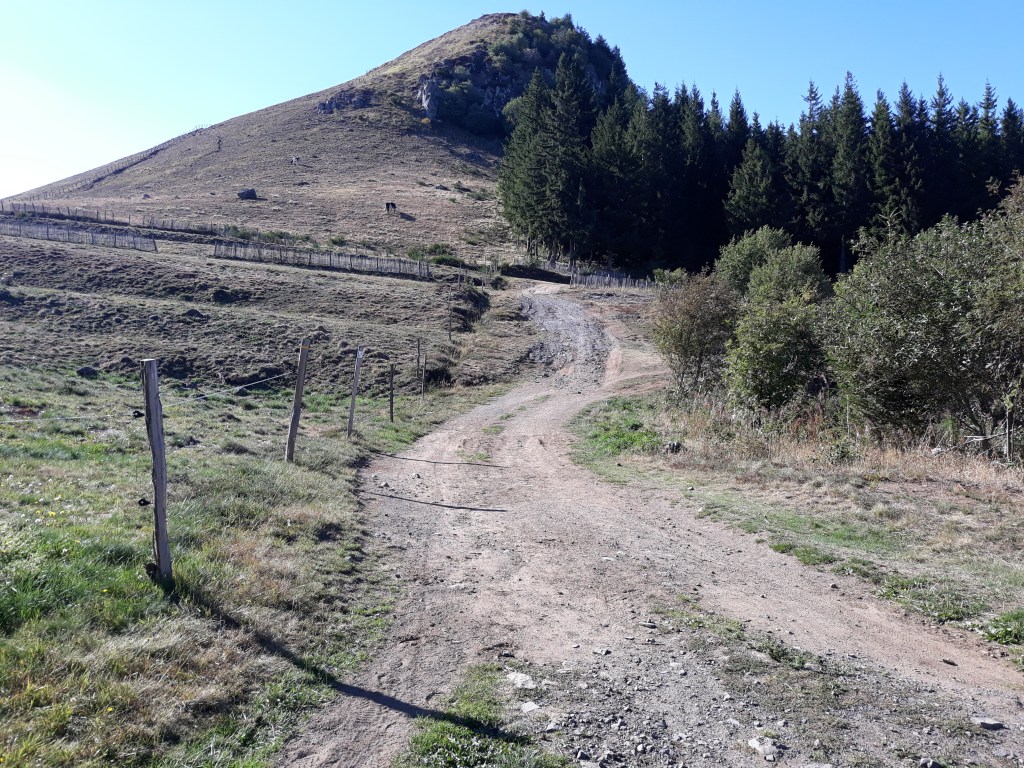 Nous marchons un peu ensemble mais quand la pente se renforce, je me rends compte que l’homme assure un rythme bien supérieur au mien. Il s’arrête pour ranger son gilet, je prends de l’avance mais rapidement il me rattrape. Nous échangeons sur nos parcours, lui fait le GR30 en entier soit près de 200 km. Il est parti de La Bourboule, il n’est pas à la moitié de son parcours. Il a réservé un hébergement dans un gîte pour ce soir, il ne doit pas trainer. Il m’explique qu’il a fait le chemin de Saint Jacques de Compostelle avec un ami. Ce doit être de la rigolade pour lui ce parcours d’à peine 200 km… Je fais une pause pour boire un coup et reprendre mon souffle, je ne le reverrai pas par la suite.
