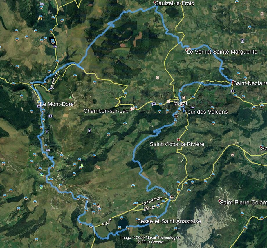 Sur le trajet, j’aperçois sur les hauteurs les grottes de Châteauneuf passées hier soir. Puis au détour d’un chemin, le château de Murol. La fin du périple.