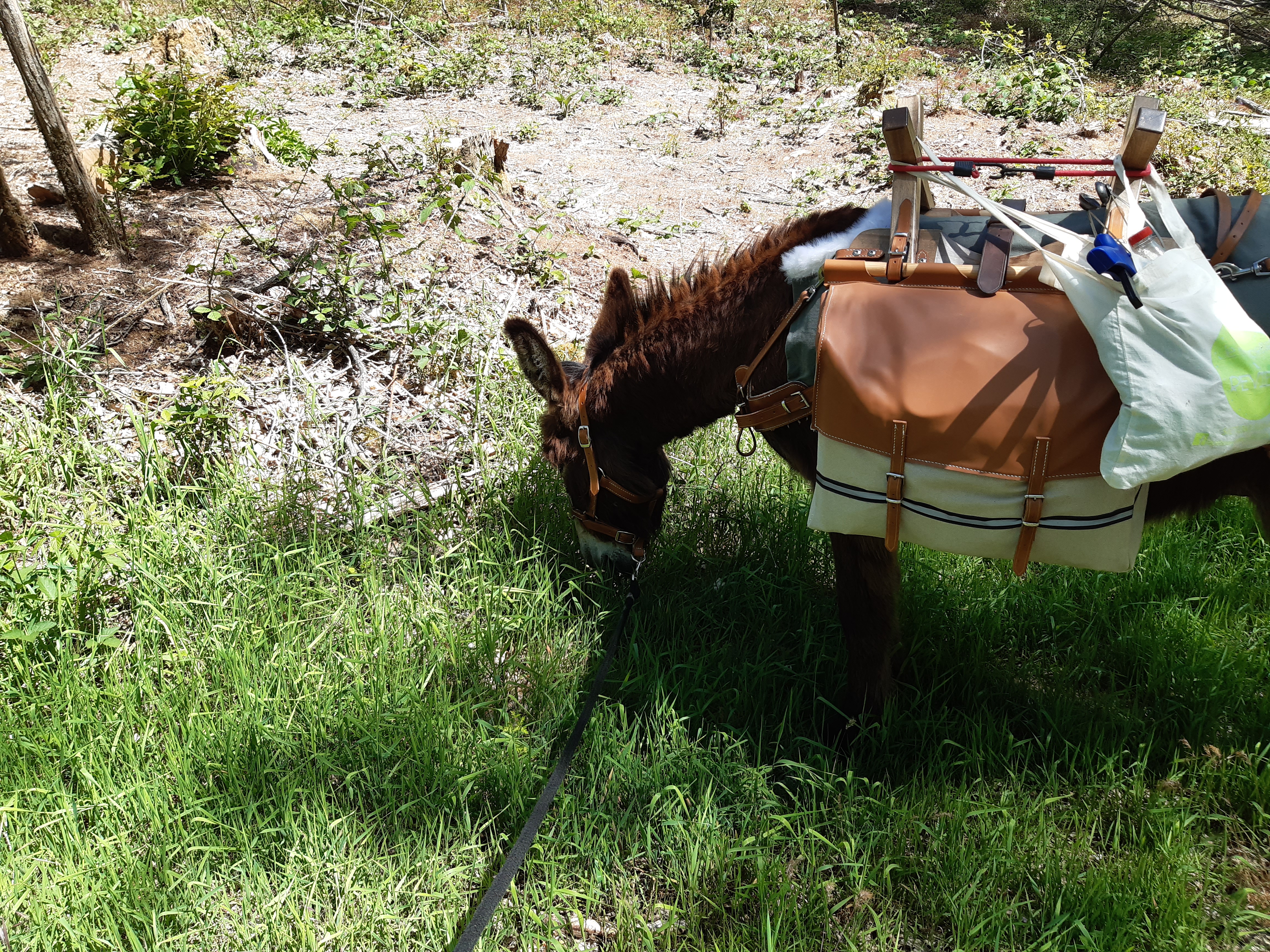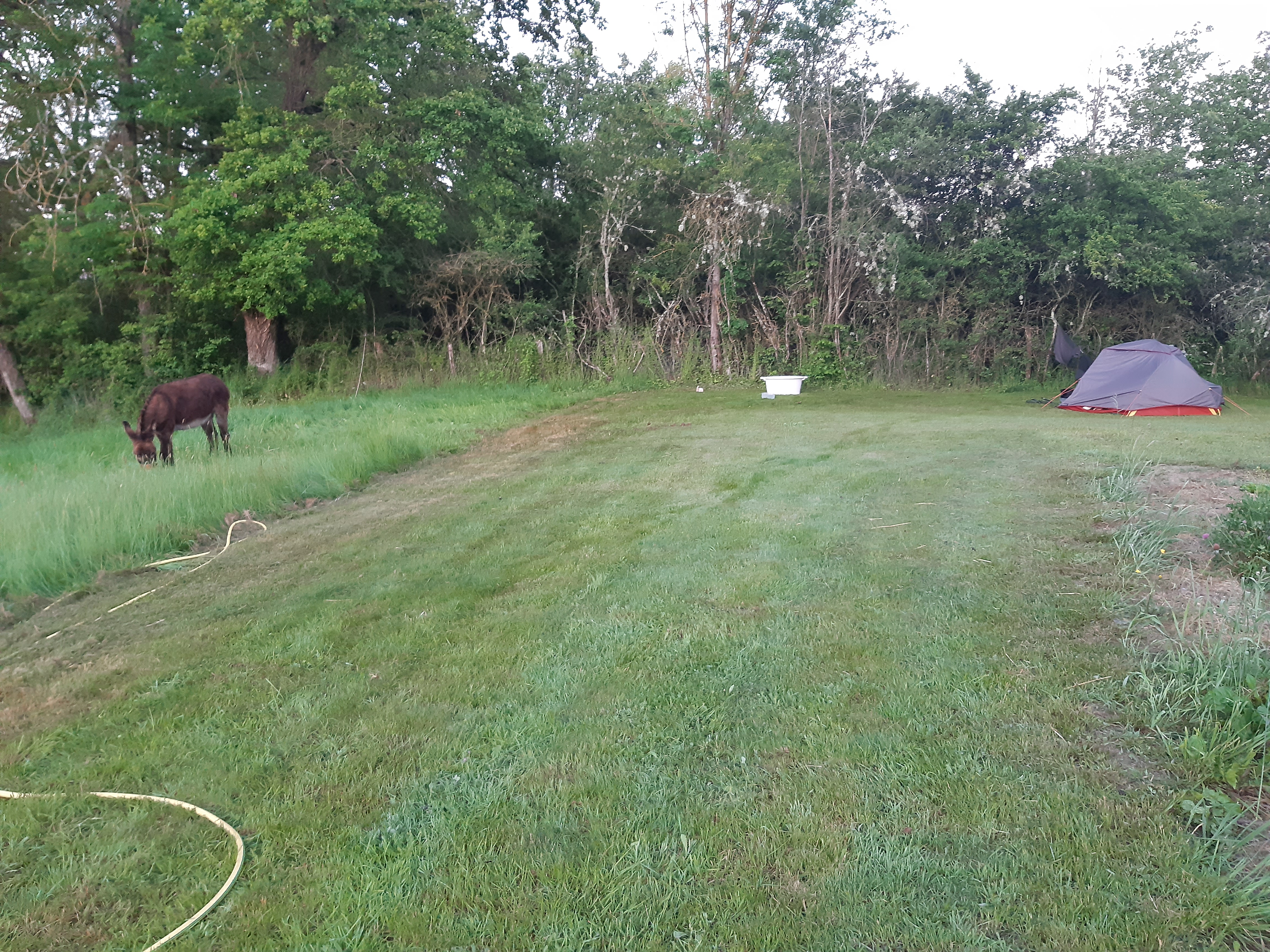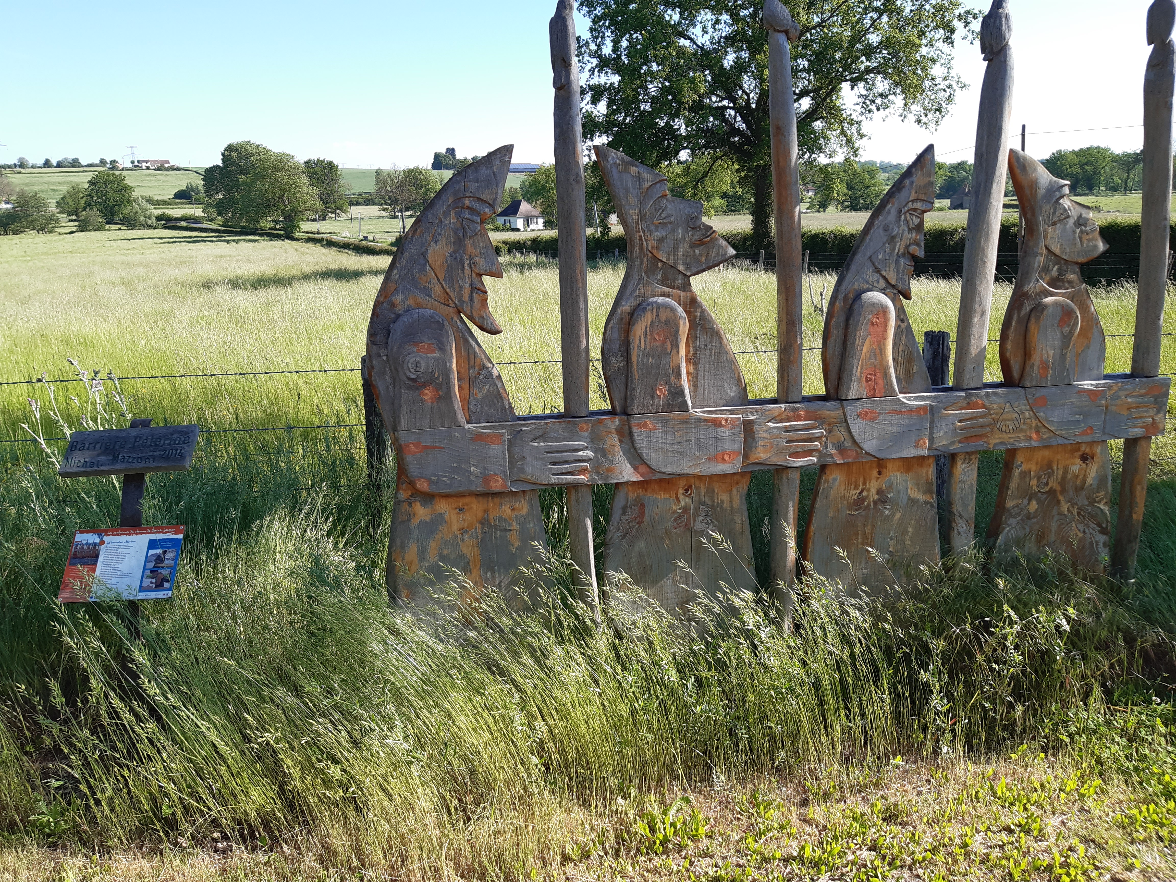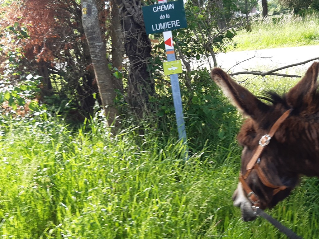 La traversée de Souvigny s’est super bien passée. J’ai même pu m’arrêter à la pharmacie, Honoré attaché devant qui m’attendait sagement. Il était l’attraction du village et nous avons été interpellés de nombreuses fois. Le chemin nous a ensuite réservé une surprise incroyable. Je m’arrête demander de l’eau et un lieu de bivouac à un couple dans son jardin, la dame, ne pouvant pas m’accueillir, va demander à son voisin. Quand je regarde chez le voisin, je reconnais un nom qui m’est familier sur le camion. Là, un type sort. Et ho stupeur, c’est Fabien que j’ai connu tout petit et que j’emmenais à la pêche quand il venait en vacances chez sa sœur Valérie, amie d’enfance, et en plus, à l’époque, collègue de travail et voisine. Tant de souvenirs remontent. Du coup je suis invité à l’apéro et même à dîner, soirée téléphone et émotions avec Valérie, Fabien me présente sa charmante petite famille. C’est magique, incroyable, émouvant. Wahou ! Merci Fabien bises et à bientôt 😉. Départ difficile du coup le lendemain matin, mais je suis tout près de Saint Menoux, je vais passer faire quelques petits coucous au marché et bien sûr à D’Âmes Nature (https://www.d-ames-nature.com/) Là encore Honoré attire tous les regards de bienveillance. Bruno, mon ancien voisin de marché, m’offre un fromage, Céline de D’âmes Nature, une nouvelle pierre pour Honoré. Merci pour toute cette bienveillance. Mais Honoré n’est pas très motivé aujourd’hui. Je le sens fatigué et moi aussi. Alors j’appelle Corinne et lui demande si je peux bivouaquer 1 ou 2 jours sur sa ferme. Et c’est donc parti pour deux jours de woofing à « coucou le jardin de l’essentiel ». Encore de belles rencontres et deux jolis dessins offerts par la petite voisine de la ferme de Corinne, Adélie qui a 7 ans et qui a fait le portrait de « lane ». Merci Adélie pour cette gentille attention. Merci à Corinne et son homme pour l’accueil, la cueillette des Bleuets… un séjour réparateur. Décidément ce chemin réserve bien des surprises.